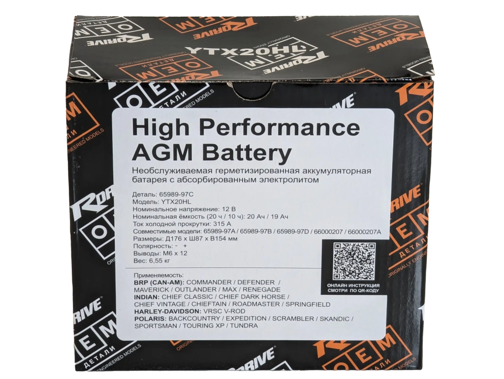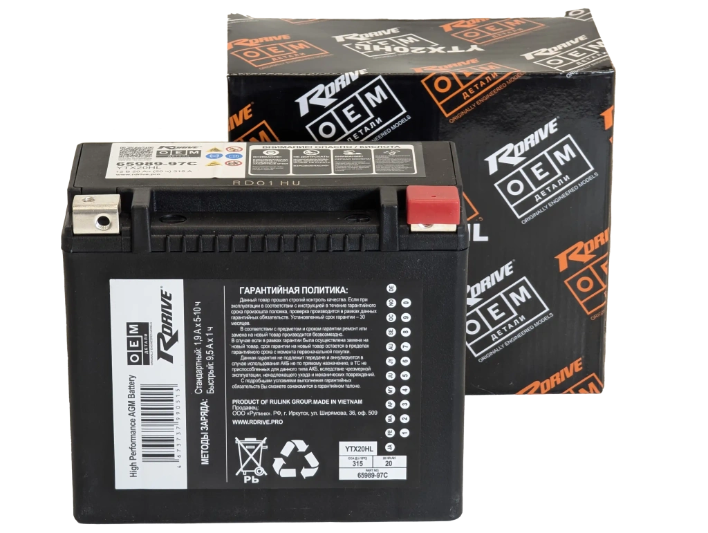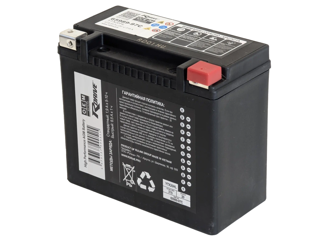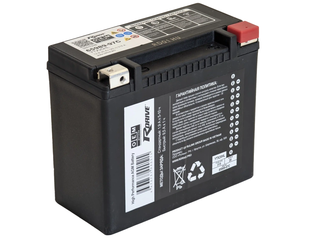 Аккумулятор RDrive OEM YTX20HL (19 Ah) 65989-97C Harley Davidson